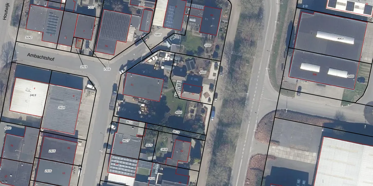 Het perceel waarop Ondernemingsweg 12 staat heeft een oppervlakte van 559 m². Dit is een groot perceel. De perceeloppervlakte wordt geregistreerd door het Kadaster. Gedetailleerde informatie over de maten van dit perceel kunt u vinden in het rapport Kadastrale kaart met maatvoering van Ondernemingsweg 12.