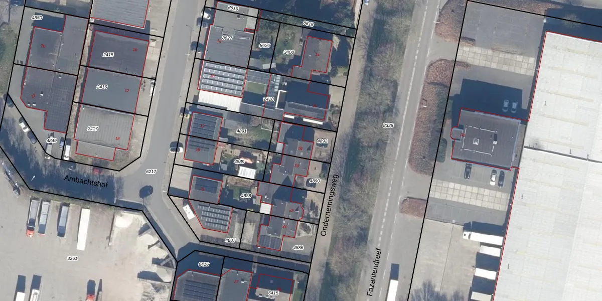 Het perceel waarop Ondernemingsweg 18 staat heeft een oppervlakte van 225 m². Dit is een middelgroot perceel. De perceeloppervlakte wordt geregistreerd door het Kadaster. Gedetailleerde informatie over de maten van dit perceel kunt u vinden in het rapport Kadastrale kaart met maatvoering van Ondernemingsweg 18.