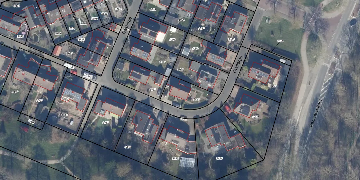 Het perceel waarop Oostergo 9 staat heeft een oppervlakte van 369 m². Dit is een groot perceel. De perceeloppervlakte wordt geregistreerd door het Kadaster. Gedetailleerde informatie over de maten van dit perceel kunt u vinden in het rapport Kadastrale kaart met maatvoering van Oostergo 9.