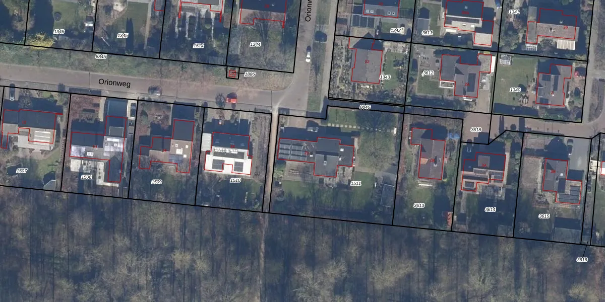 Het perceel waarop Orionweg 20 staat heeft een oppervlakte van 1457 m². Dit is een zeer groot perceel. De perceeloppervlakte wordt geregistreerd door het Kadaster. Gedetailleerde informatie over de maten van dit perceel kunt u vinden in het rapport Kadastrale kaart met maatvoering van Orionweg 20.
