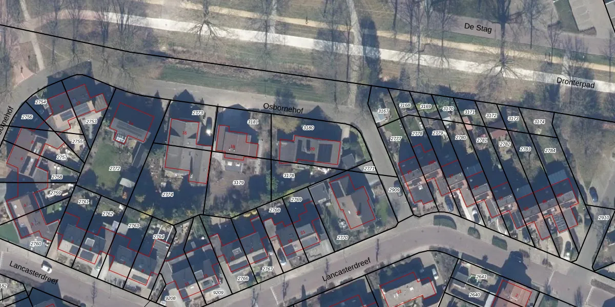 Het perceel waarop Osbornehof 20 staat heeft een oppervlakte van 448 m². Dit is een groot perceel. De perceeloppervlakte wordt geregistreerd door het Kadaster. Gedetailleerde informatie over de maten van dit perceel kunt u vinden in het rapport Kadastrale kaart met maatvoering van Osbornehof 20.