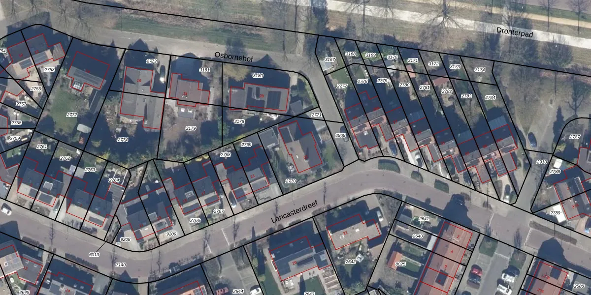Het perceel waarop Osbornehof 22 staat heeft een oppervlakte van 500 m². Dit is een groot perceel. De perceeloppervlakte wordt geregistreerd door het Kadaster. Gedetailleerde informatie over de maten van dit perceel kunt u vinden in het rapport Kadastrale kaart met maatvoering van Osbornehof 22.