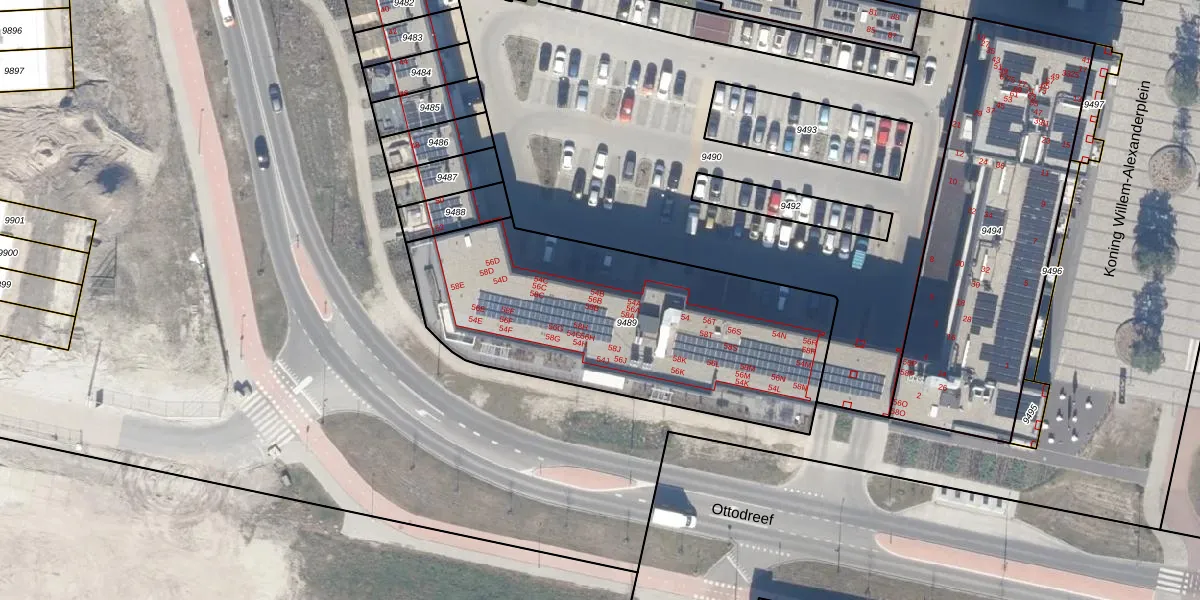 Ottodreef 56-B is gelegen op kadastraal perceel DTN01A9489. Deze kadastrale aanduiding is uniek en wordt gebruikt door het Kadaster om eigendomsrechten en andere zakelijke rechten vast te leggen. Het perceel maakt onderdeel uit van de kadastrale gemeente Dronten.