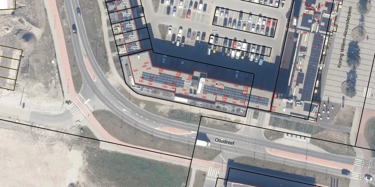 Ottodreef 56-J is gelegen op kadastraal perceel DTN01A9489. Deze kadastrale aanduiding is uniek en wordt gebruikt door het Kadaster om eigendomsrechten en andere zakelijke rechten vast te leggen. Het perceel maakt onderdeel uit van de kadastrale gemeente Dronten.