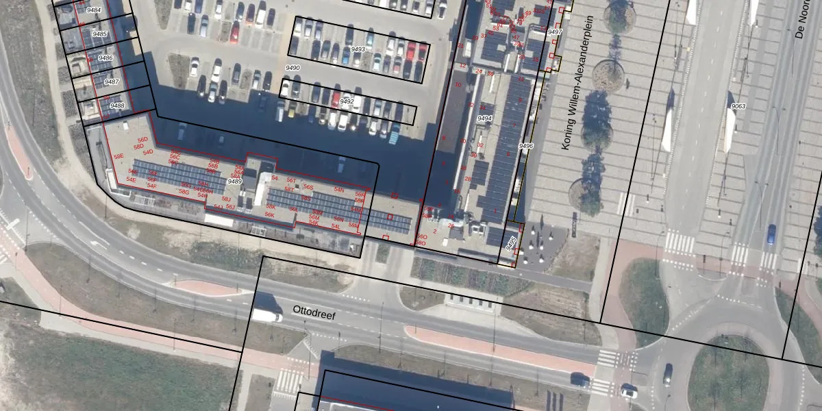 Ottodreef 56-P is gelegen op kadastraal perceel DTN01A9490. Deze kadastrale aanduiding is uniek en wordt gebruikt door het Kadaster om eigendomsrechten en andere zakelijke rechten vast te leggen. Het perceel maakt onderdeel uit van de kadastrale gemeente Dronten.