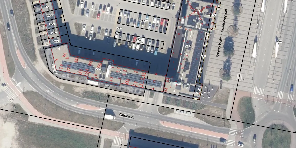 Ottodreef 56-R is gelegen op kadastraal perceel DTN01A9489. Deze kadastrale aanduiding is uniek en wordt gebruikt door het Kadaster om eigendomsrechten en andere zakelijke rechten vast te leggen. Het perceel maakt onderdeel uit van de kadastrale gemeente Dronten.