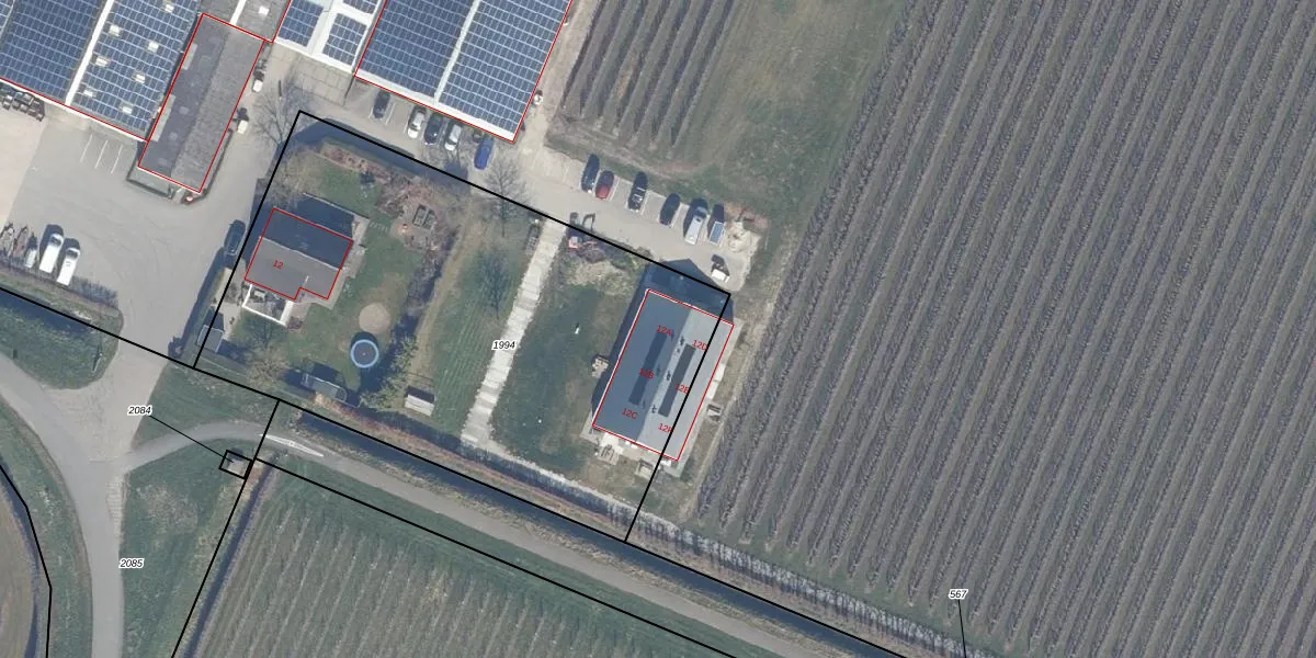 Het perceel waarop Ottolanderlaan 12-A staat heeft een oppervlakte van 2940 m². Dit is een zeer groot perceel. De perceeloppervlakte wordt geregistreerd door het Kadaster. Gedetailleerde informatie over de maten van dit perceel kunt u vinden in het rapport Kadastrale kaart met maatvoering van Ottolanderlaan 12-A.