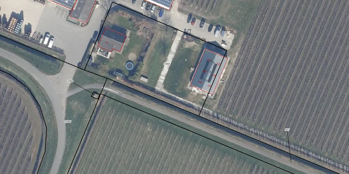 Het perceel waarop Ottolanderlaan 12-K staat heeft een oppervlakte van 2940 m². Dit is een zeer groot perceel. De perceeloppervlakte wordt geregistreerd door het Kadaster. Gedetailleerde informatie over de maten van dit perceel kunt u vinden in het rapport Kadastrale kaart met maatvoering van Ottolanderlaan 12-K.