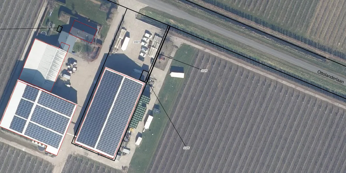 Het perceel waarop Ottolanderlaan 7-B staat heeft een oppervlakte van 19,0 ha. Dit is een zeer groot perceel. De perceeloppervlakte wordt geregistreerd door het Kadaster. Gedetailleerde informatie over de maten van dit perceel kunt u vinden in het rapport Kadastrale kaart met maatvoering van Ottolanderlaan 7-B.