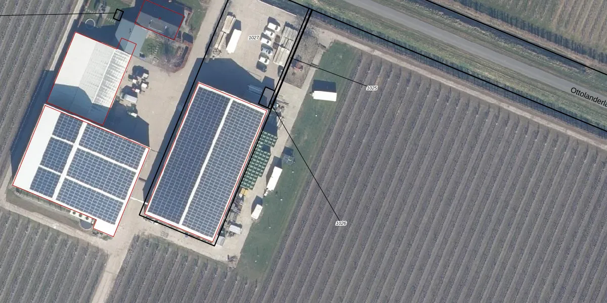 Het perceel waarop Ottolanderlaan 7-D staat heeft een oppervlakte van 19,0 ha. Dit is een zeer groot perceel. De perceeloppervlakte wordt geregistreerd door het Kadaster. Gedetailleerde informatie over de maten van dit perceel kunt u vinden in het rapport Kadastrale kaart met maatvoering van Ottolanderlaan 7-D.