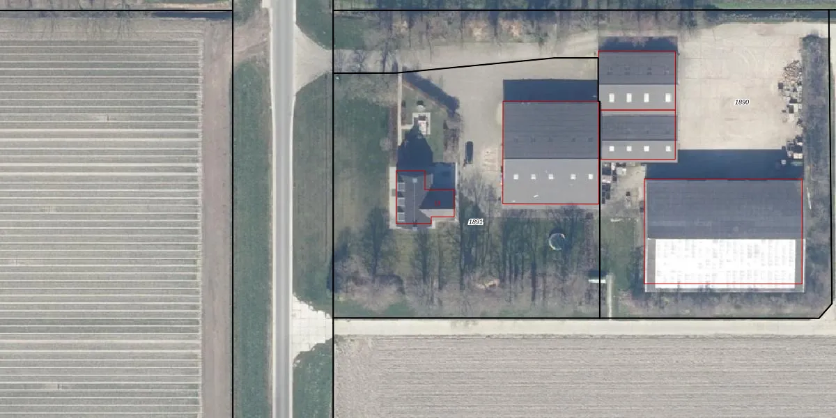 Het adres is gelegen op perceel 1891 in de sectie C en de kadastrale gemeente Dronten. De kadastrale aanduiding is aldus DTN01-C-1891. Het perceel is kleiner dan gemiddeld in Dronten. Het perceel is 3840 m² groot, terwijl het gemiddelde ligt op 1,8 ha. De grootste perceeloppervlakte in de kadastrale gemeente is 25,03 km². De kleinste oppervlakte bedraagt 0 m². Dit is het enige adres dat aanwezig is op het perceel. De huidige grenzen van het perceel zijn digitaal in de Basisregistratie Kadaster (BRK) geregistreerd op 01-05-2020.