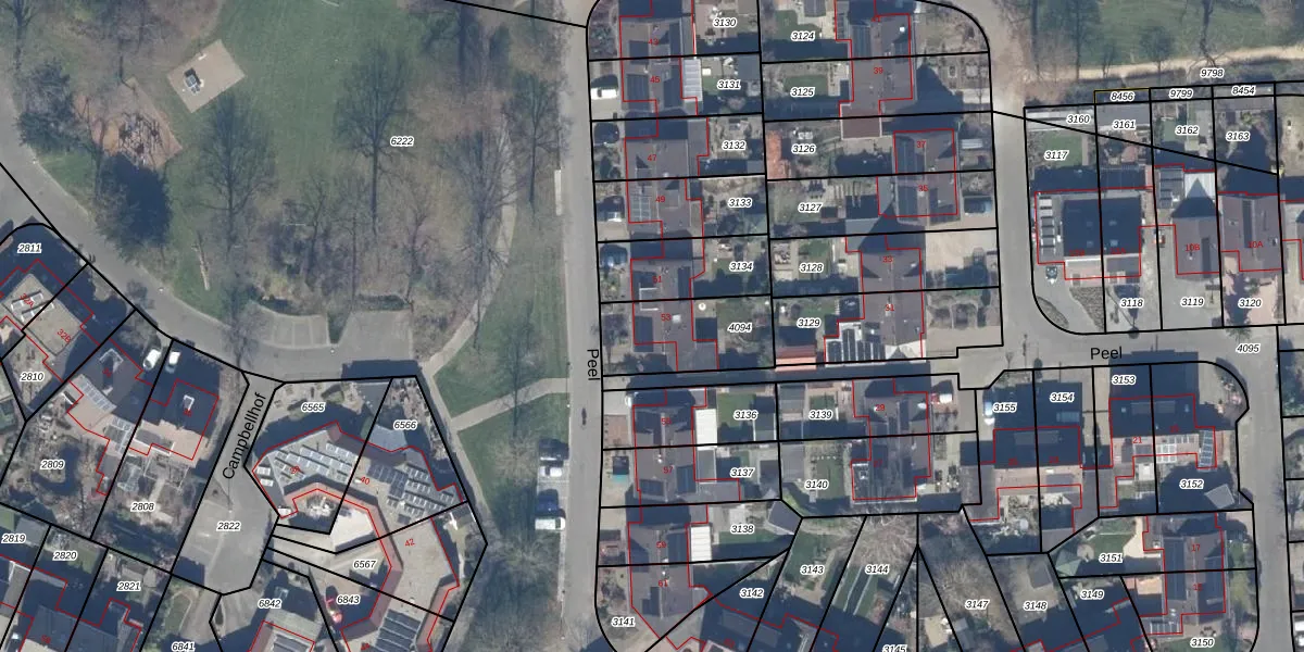Het perceel waarop Peel 53 staat heeft een oppervlakte van 296 m². Dit is een middelgroot perceel. De perceeloppervlakte wordt geregistreerd door het Kadaster. Gedetailleerde informatie over de maten van dit perceel kunt u vinden in het rapport Kadastrale kaart met maatvoering van Peel 53.