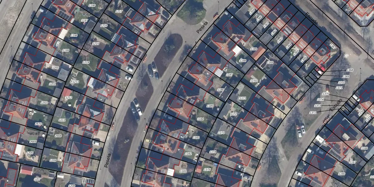 Het perceel waarop Peseta 14 staat heeft een oppervlakte van 311 m². Dit is een groot perceel. De perceeloppervlakte wordt geregistreerd door het Kadaster. Gedetailleerde informatie over de maten van dit perceel kunt u vinden in het rapport Kadastrale kaart met maatvoering van Peseta 14.