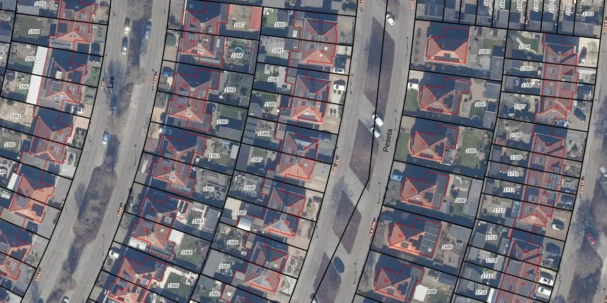 Het perceel waarop Peseta 49 staat heeft een oppervlakte van 291 m². Dit is een middelgroot perceel. De perceeloppervlakte wordt geregistreerd door het Kadaster. Gedetailleerde informatie over de maten van dit perceel kunt u vinden in het rapport Kadastrale kaart met maatvoering van Peseta 49.