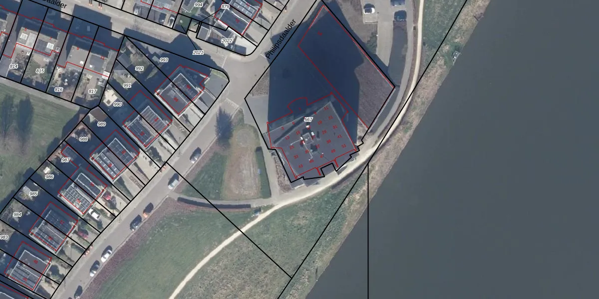 Het perceel waarop Philipsdaalder 45 staat heeft een oppervlakte van 1732 m². Dit is een zeer groot perceel. De perceeloppervlakte wordt geregistreerd door het Kadaster. Gedetailleerde informatie over de maten van dit perceel kunt u vinden in het rapport Kadastrale kaart met maatvoering van Philipsdaalder 45.