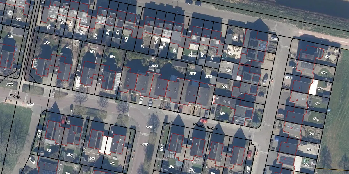 Het perceel waarop Philipsgulden 4 staat heeft een oppervlakte van 1040 m². Dit is een zeer groot perceel. De perceeloppervlakte wordt geregistreerd door het Kadaster. Gedetailleerde informatie over de maten van dit perceel kunt u vinden in het rapport Kadastrale kaart met maatvoering van Philipsgulden 4.