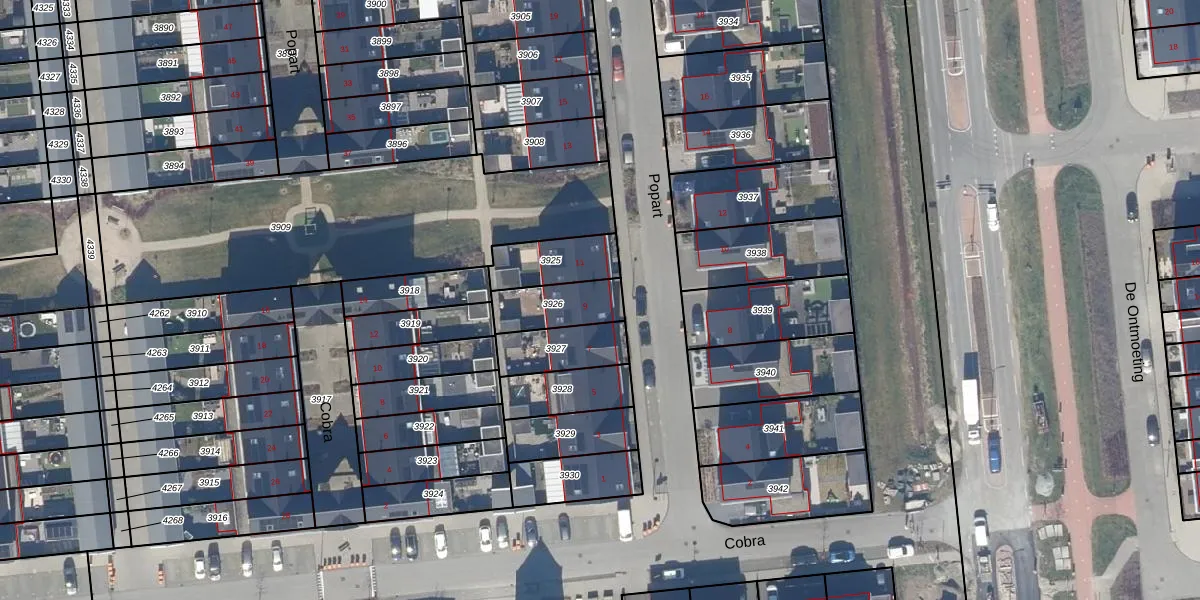 Het perceel waarop Popart 9 staat heeft een oppervlakte van 157 m². Dit is een middelgroot perceel. De perceeloppervlakte wordt geregistreerd door het Kadaster. Gedetailleerde informatie over de maten van dit perceel kunt u vinden in het rapport Kadastrale kaart met maatvoering van Popart 9.