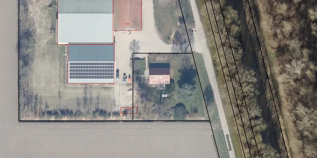 Reveweg 12 is gelegen op kadastraal perceel DTN01C2207. Deze kadastrale aanduiding is uniek en wordt gebruikt door het Kadaster om eigendomsrechten en andere zakelijke rechten vast te leggen. Het perceel maakt onderdeel uit van de kadastrale gemeente Dronten.