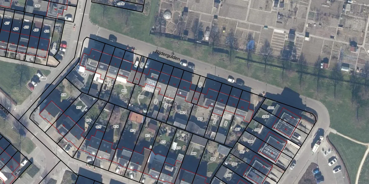 Het perceel waarop Rijdergulden 15 staat heeft een oppervlakte van 310 m². Dit is een groot perceel. De perceeloppervlakte wordt geregistreerd door het Kadaster. Gedetailleerde informatie over de maten van dit perceel kunt u vinden in het rapport Kadastrale kaart met maatvoering van Rijdergulden 15.
