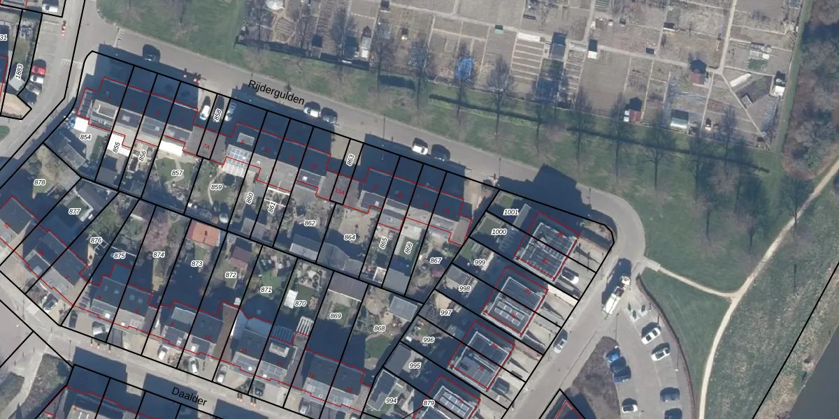 Het perceel waarop Rijdergulden 21 staat heeft een oppervlakte van 184 m². Dit is een middelgroot perceel. De perceeloppervlakte wordt geregistreerd door het Kadaster. Gedetailleerde informatie over de maten van dit perceel kunt u vinden in het rapport Kadastrale kaart met maatvoering van Rijdergulden 21.