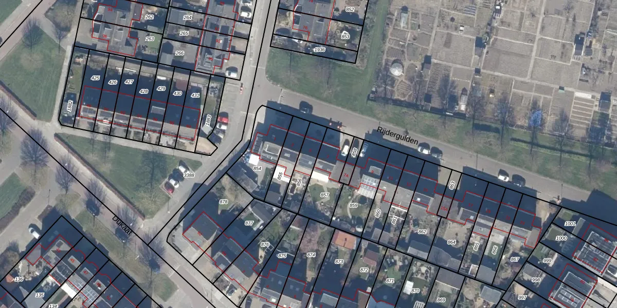 Het perceel waarop Rijdergulden 5 staat heeft een oppervlakte van 174 m². Dit is een middelgroot perceel. De perceeloppervlakte wordt geregistreerd door het Kadaster. Gedetailleerde informatie over de maten van dit perceel kunt u vinden in het rapport Kadastrale kaart met maatvoering van Rijdergulden 5.