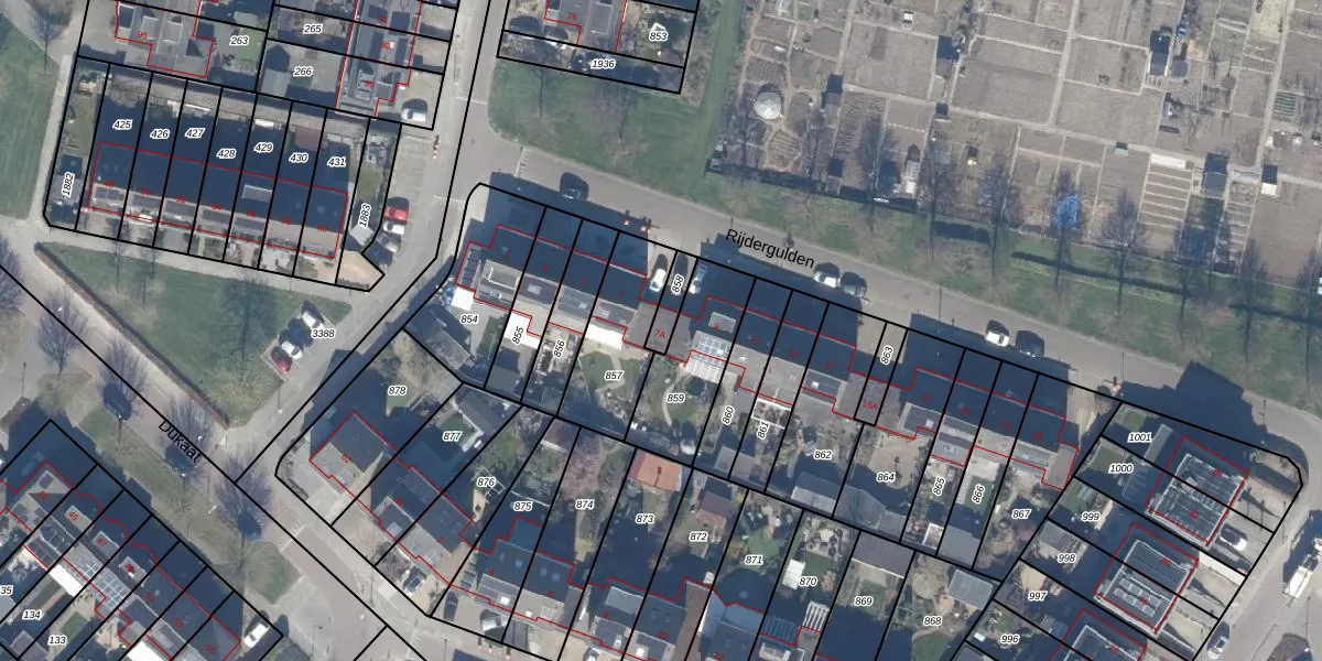 Het perceel waarop Rijdergulden 7-A staat heeft een oppervlakte van 52 m². Dit is een klein perceel. De perceeloppervlakte wordt geregistreerd door het Kadaster. Gedetailleerde informatie over de maten van dit perceel kunt u vinden in het rapport Kadastrale kaart met maatvoering van Rijdergulden 7-A.