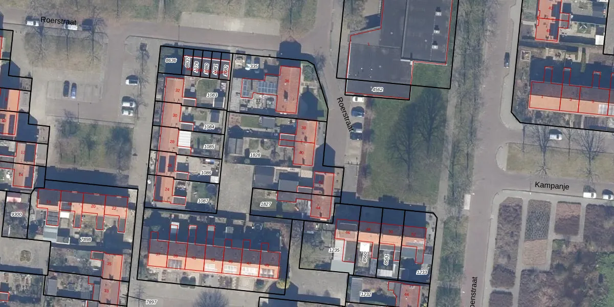 Het perceel waarop Roerstraat 40 staat heeft een oppervlakte van 2114 m². Dit is een zeer groot perceel. De perceeloppervlakte wordt geregistreerd door het Kadaster. Gedetailleerde informatie over de maten van dit perceel kunt u vinden in het rapport Kadastrale kaart met maatvoering van Roerstraat 40.