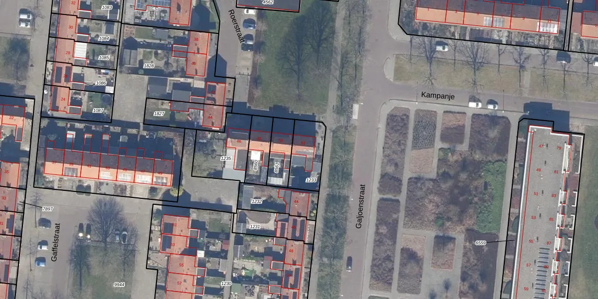 Het perceel waarop Roerstraat 52 staat heeft een oppervlakte van 233 m². Dit is een middelgroot perceel. De perceeloppervlakte wordt geregistreerd door het Kadaster. Gedetailleerde informatie over de maten van dit perceel kunt u vinden in het rapport Kadastrale kaart met maatvoering van Roerstraat 52.