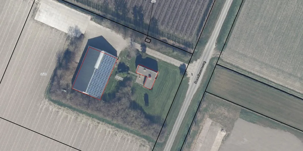 Het perceel waarop Roodbeenweg 16 staat heeft een oppervlakte van 9611 m². Dit is een zeer groot perceel. De perceeloppervlakte wordt geregistreerd door het Kadaster. Gedetailleerde informatie over de maten van dit perceel kunt u vinden in het rapport Kadastrale kaart met maatvoering van Roodbeenweg 16.