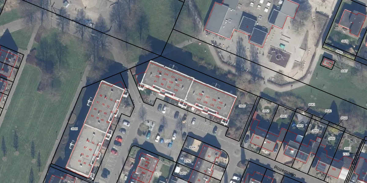 Het perceel waarop Rozemarijn 111 staat heeft een oppervlakte van 1503 m². Dit is een zeer groot perceel. De perceeloppervlakte wordt geregistreerd door het Kadaster. Gedetailleerde informatie over de maten van dit perceel kunt u vinden in het rapport Kadastrale kaart met maatvoering van Rozemarijn 111.