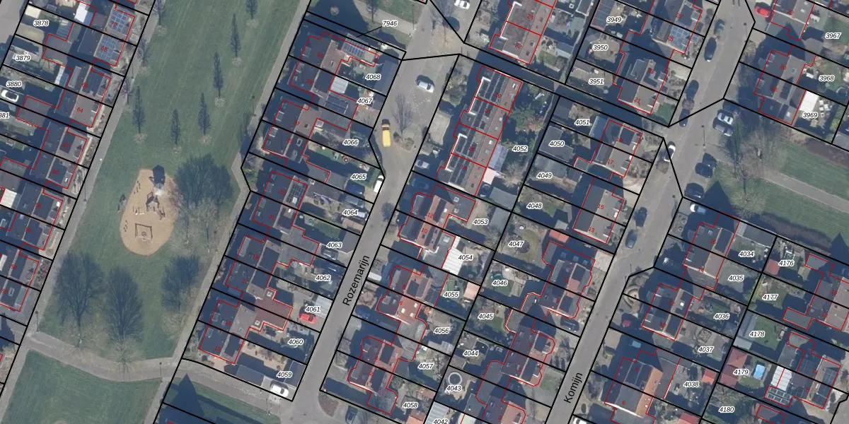 Gebruik de zoekbalk of klik op een perceel voor informatie over de adressen binnen dit perceel.