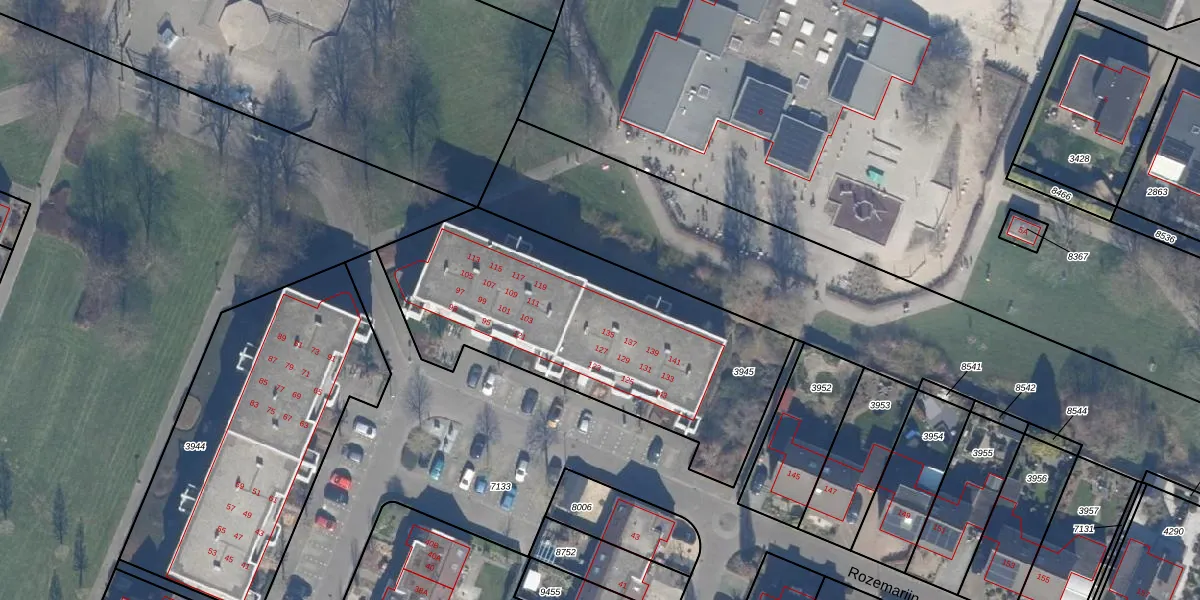 Het perceel waarop Rozemarijn 141 staat heeft een oppervlakte van 1503 m². Dit is een zeer groot perceel. De perceeloppervlakte wordt geregistreerd door het Kadaster. Gedetailleerde informatie over de maten van dit perceel kunt u vinden in het rapport Kadastrale kaart met maatvoering van Rozemarijn 141.