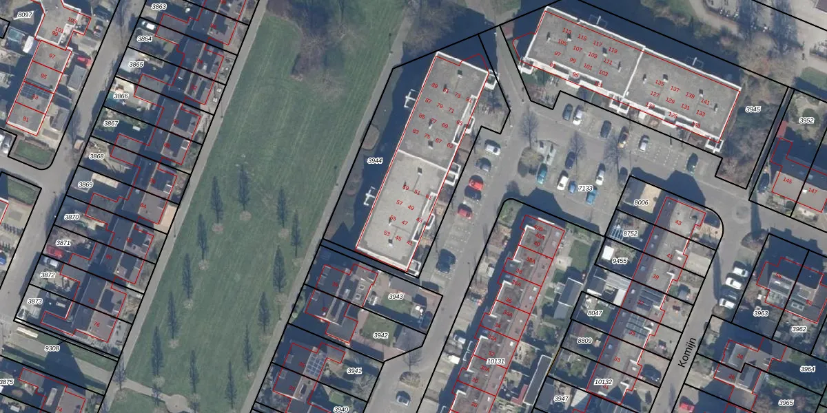 Het adres ligt op het perceel DTN01-A-3944, dat zich in de kadastrale gemeente Dronten bevindt. De gemiddelde perceelgrootte in Dronten is 1,8 ha. Dit perceel is kleiner: de perceeloppervlakte bedraagt 1384 m². De grootste perceeloppervlakte in de kadastrale gemeente is 25,03 km². De kleinste oppervlakte bedraagt 0 m². Op het perceel zijn 26 adressen aanwezig. De laatste wijziging in het de Basisregistratie Kadaster (BRK) was op 19-09-2006.