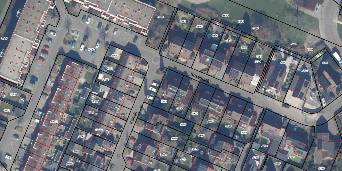 Het perceel waarop Rozemarijn 56 staat heeft een oppervlakte van 247 m². Dit is een middelgroot perceel. De perceeloppervlakte wordt geregistreerd door het Kadaster. Gedetailleerde informatie over de maten van dit perceel kunt u vinden in het rapport Kadastrale kaart met maatvoering van Rozemarijn 56.