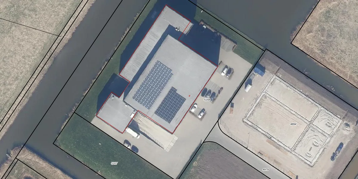 Het adres is gelegen op perceel 5168 in de sectie B en de kadastrale gemeente Dronten. De kadastrale aanduiding is aldus DTN01-B-5168. De gemiddelde perceelgrootte in Dronten is 1,8 ha. Dit perceel is kleiner: de perceeloppervlakte bedraagt 6055 m². Het kleinste perceel in de kadastrale gemeente is 0 m² groot. De grootste perceeloppervlakte is 25,03 km². Dit is het enige adres dat aanwezig is op het perceel. De huidige grenzen van het perceel zijn digitaal in de Basisregistratie Kadaster (BRK) geregistreerd op 18-12-2025.