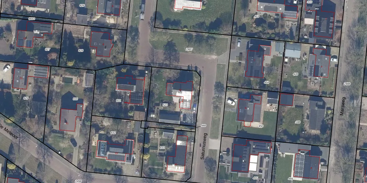 Saturnusweg 12 is gelegen op kadastraal perceel DTN01A523. Deze kadastrale aanduiding is uniek en wordt gebruikt door het Kadaster om eigendomsrechten en andere zakelijke rechten vast te leggen. Het perceel maakt onderdeel uit van de kadastrale gemeente Dronten.