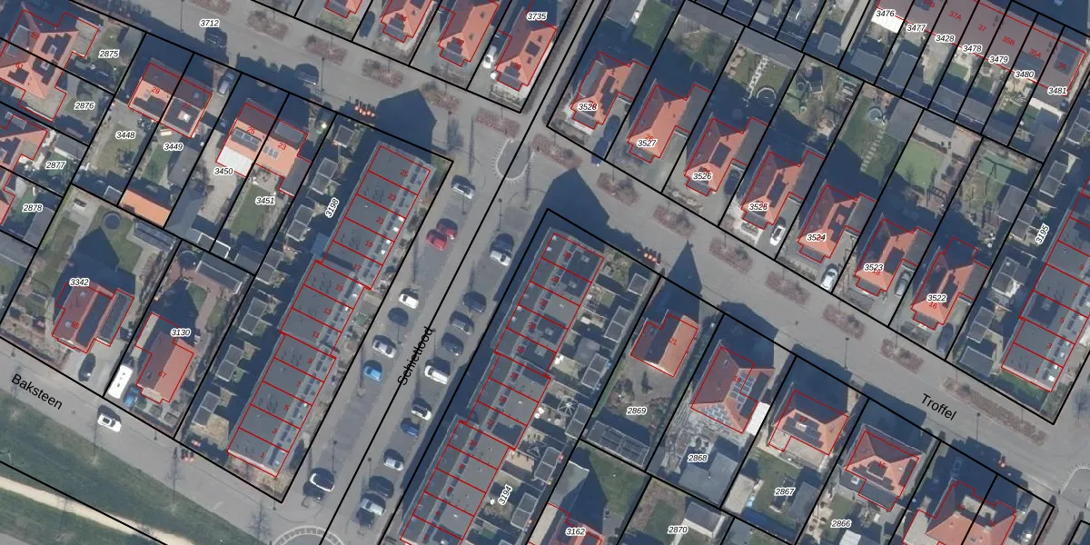 Het perceel waarop Schietlood 24 staat heeft een oppervlakte van 1652 m². Dit is een zeer groot perceel. De perceeloppervlakte wordt geregistreerd door het Kadaster. Gedetailleerde informatie over de maten van dit perceel kunt u vinden in het rapport Kadastrale kaart met maatvoering van Schietlood 24.