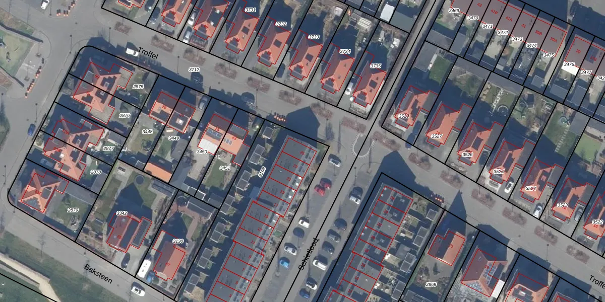 Het perceel waarop Schietlood 25 staat heeft een oppervlakte van 1577 m². Dit is een zeer groot perceel. De perceeloppervlakte wordt geregistreerd door het Kadaster. Gedetailleerde informatie over de maten van dit perceel kunt u vinden in het rapport Kadastrale kaart met maatvoering van Schietlood 25.