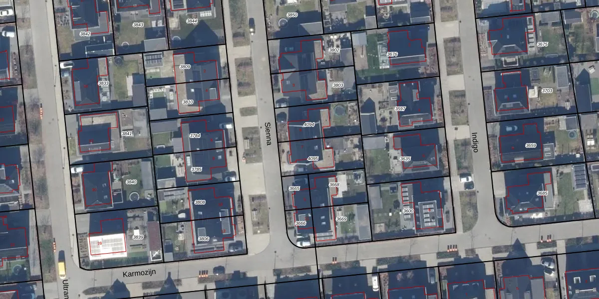 Het perceel waarop Sienna 7 staat heeft een oppervlakte van 322 m². Dit is een groot perceel. De perceeloppervlakte wordt geregistreerd door het Kadaster. Gedetailleerde informatie over de maten van dit perceel kunt u vinden in het rapport Kadastrale kaart met maatvoering van Sienna 7.