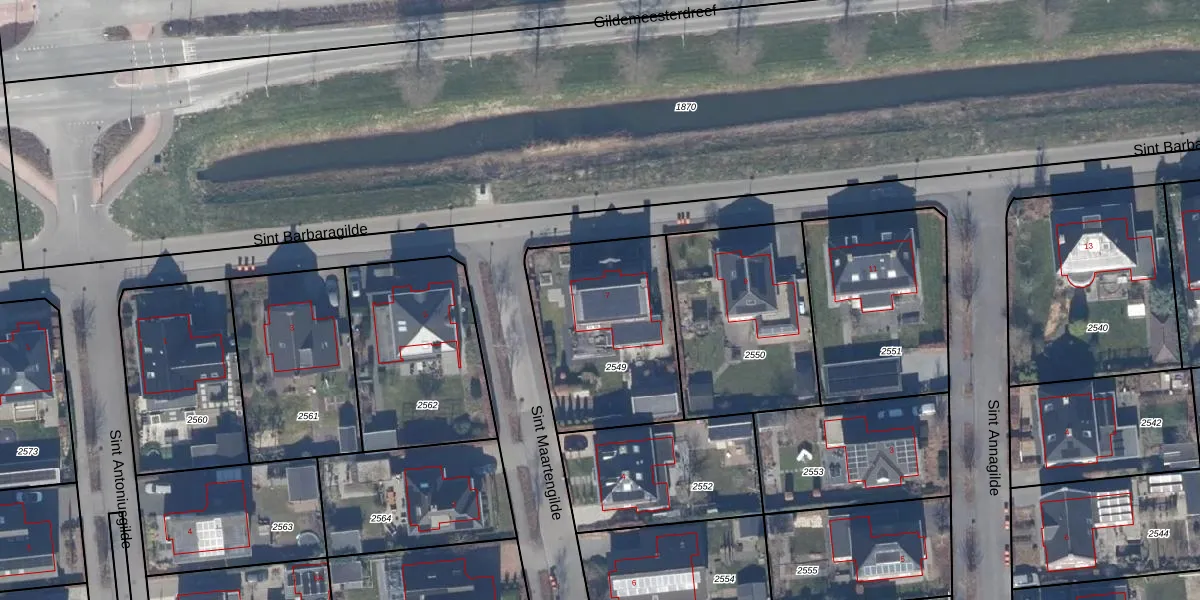 Het perceel waarop Sint Barbaragilde 7 staat heeft een oppervlakte van 705 m². Dit is een groot perceel. De perceeloppervlakte wordt geregistreerd door het Kadaster. Gedetailleerde informatie over de maten van dit perceel kunt u vinden in het rapport Kadastrale kaart met maatvoering van Sint Barbaragilde 7.