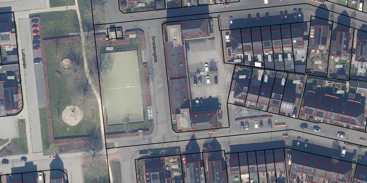 Het perceel waarop Smedengilde 34 staat heeft een oppervlakte van 1961 m². Dit is een zeer groot perceel. De perceeloppervlakte wordt geregistreerd door het Kadaster. Gedetailleerde informatie over de maten van dit perceel kunt u vinden in het rapport Kadastrale kaart met maatvoering van Smedengilde 34.