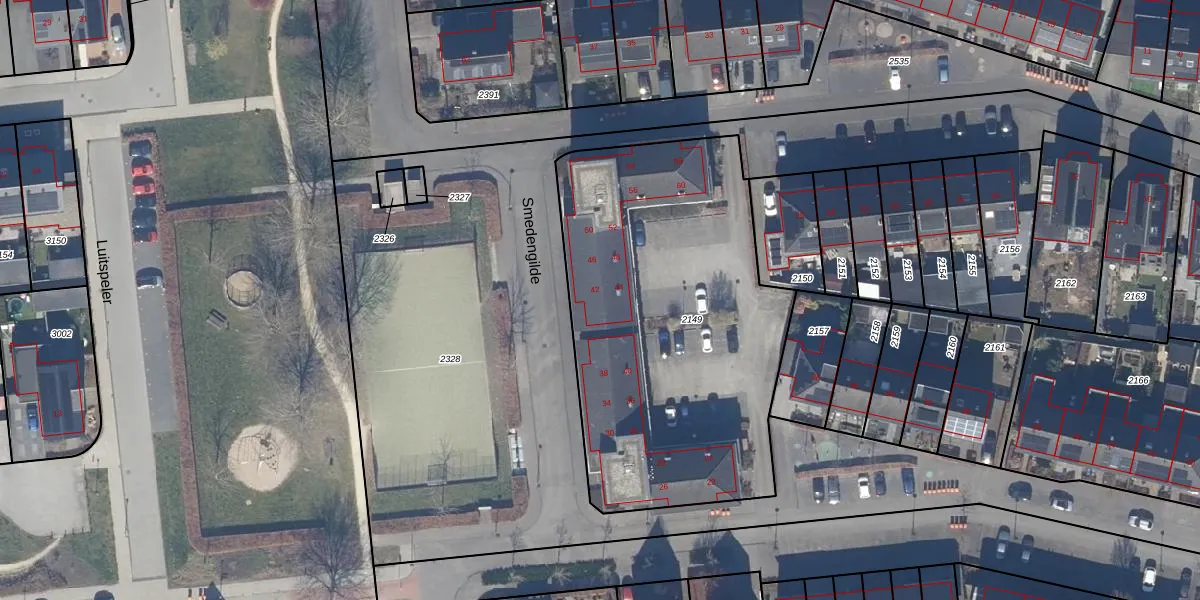 Het perceel waarop Smedengilde 44 staat heeft een oppervlakte van 1961 m². Dit is een zeer groot perceel. De perceeloppervlakte wordt geregistreerd door het Kadaster. Gedetailleerde informatie over de maten van dit perceel kunt u vinden in het rapport Kadastrale kaart met maatvoering van Smedengilde 44.