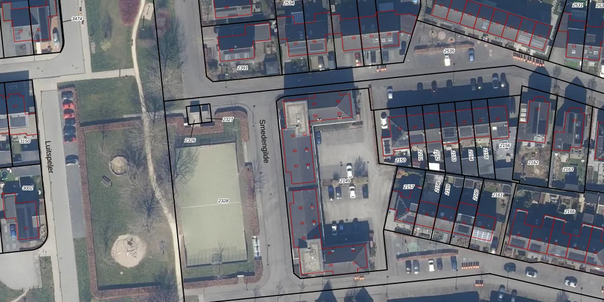 Het perceel waarop Smedengilde 50 staat heeft een oppervlakte van 1961 m². Dit is een zeer groot perceel. De perceeloppervlakte wordt geregistreerd door het Kadaster. Gedetailleerde informatie over de maten van dit perceel kunt u vinden in het rapport Kadastrale kaart met maatvoering van Smedengilde 50.