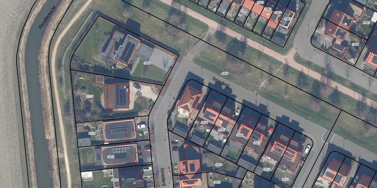Het perceel waarop Smederij 104 staat heeft een oppervlakte van 389 m². Dit is een groot perceel. De perceeloppervlakte wordt geregistreerd door het Kadaster. Gedetailleerde informatie over de maten van dit perceel kunt u vinden in het rapport Kadastrale kaart met maatvoering van Smederij 104.
