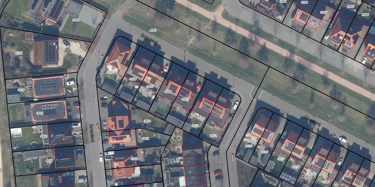 Het perceel waarop Smederij 108 staat heeft een oppervlakte van 301 m². Dit is een groot perceel. De perceeloppervlakte wordt geregistreerd door het Kadaster. Gedetailleerde informatie over de maten van dit perceel kunt u vinden in het rapport Kadastrale kaart met maatvoering van Smederij 108.