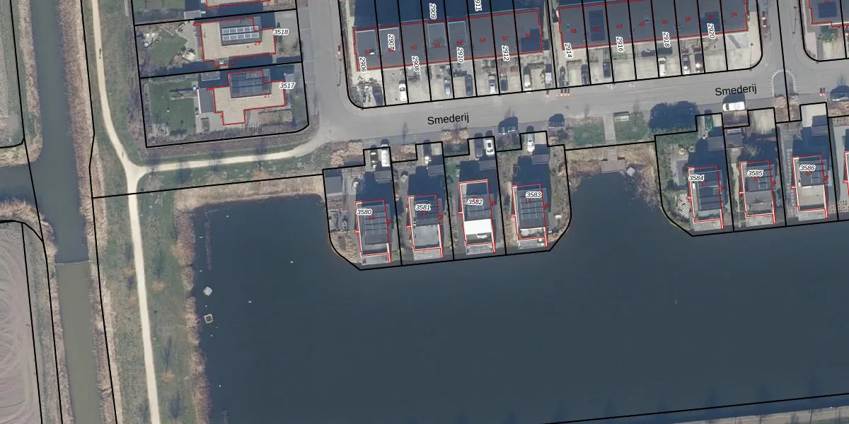 Het perceel waarop Smederij 23 staat heeft een oppervlakte van 325 m². Dit is een groot perceel. De perceeloppervlakte wordt geregistreerd door het Kadaster. Gedetailleerde informatie over de maten van dit perceel kunt u vinden in het rapport Kadastrale kaart met maatvoering van Smederij 23.