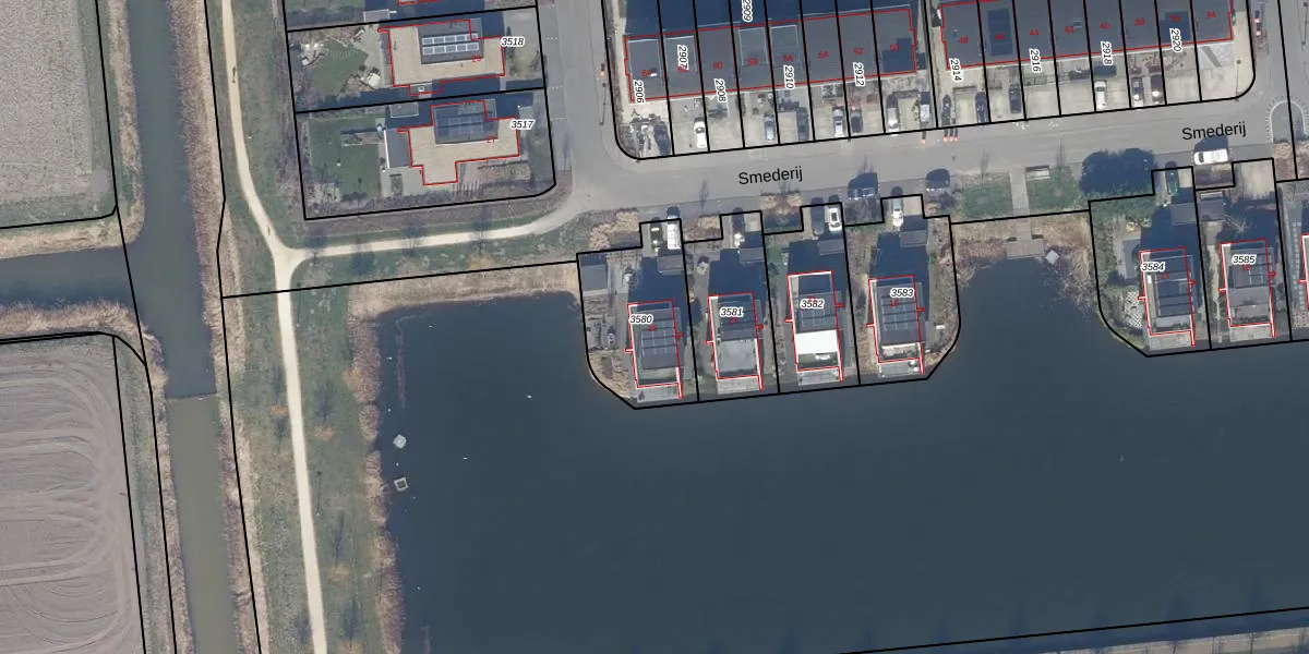 Het perceel waarop Smederij 25 staat heeft een oppervlakte van 399 m². Dit is een groot perceel. De perceeloppervlakte wordt geregistreerd door het Kadaster. Gedetailleerde informatie over de maten van dit perceel kunt u vinden in het rapport Kadastrale kaart met maatvoering van Smederij 25.