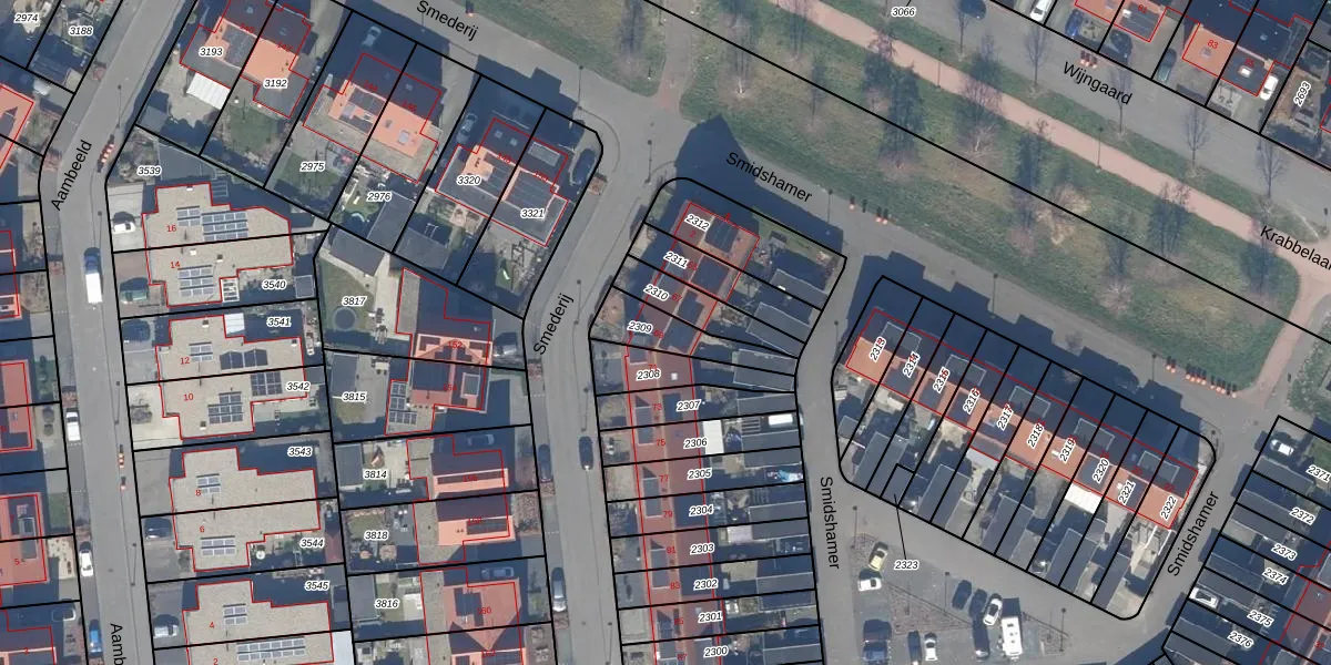 Het perceel waarop Smederij 69 staat heeft een oppervlakte van 153 m². Dit is een middelgroot perceel. De perceeloppervlakte wordt geregistreerd door het Kadaster. Gedetailleerde informatie over de maten van dit perceel kunt u vinden in het rapport Kadastrale kaart met maatvoering van Smederij 69.