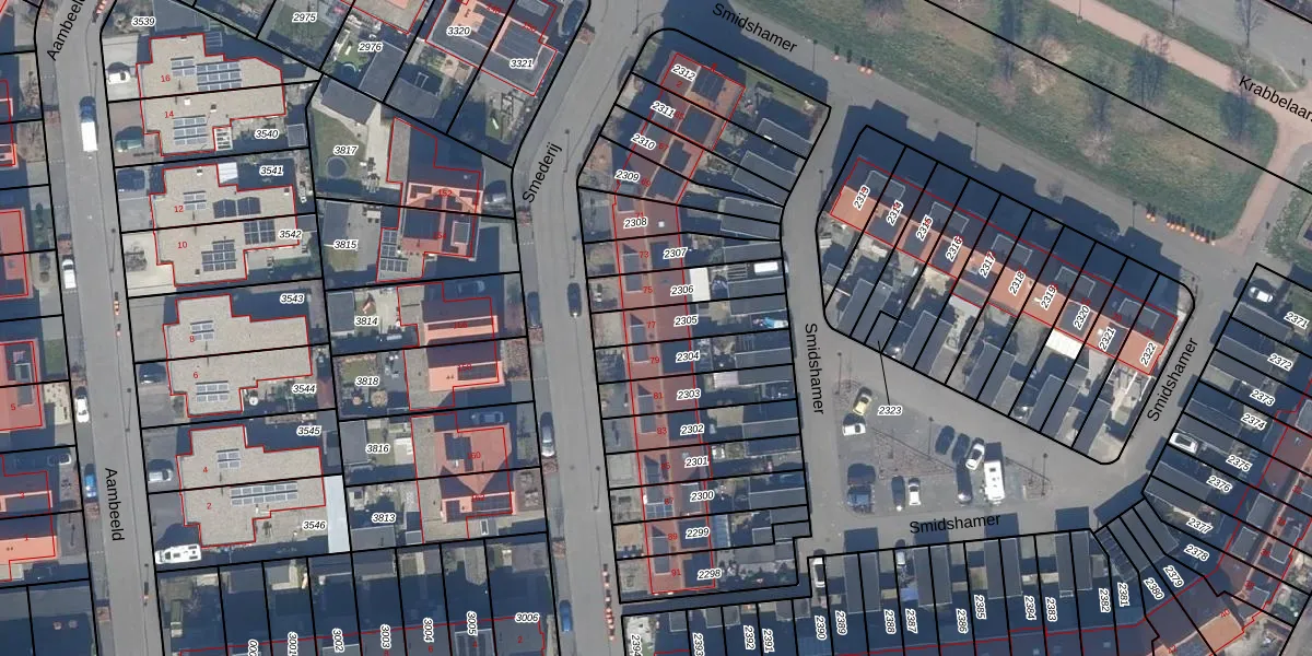 Het perceel waarop Smederij 77 staat heeft een oppervlakte van 162 m². Dit is een middelgroot perceel. De perceeloppervlakte wordt geregistreerd door het Kadaster. Gedetailleerde informatie over de maten van dit perceel kunt u vinden in het rapport Kadastrale kaart met maatvoering van Smederij 77.