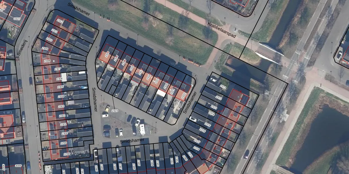 Gebruik de zoekbalk of klik op een perceel voor informatie over de adressen binnen dit perceel.